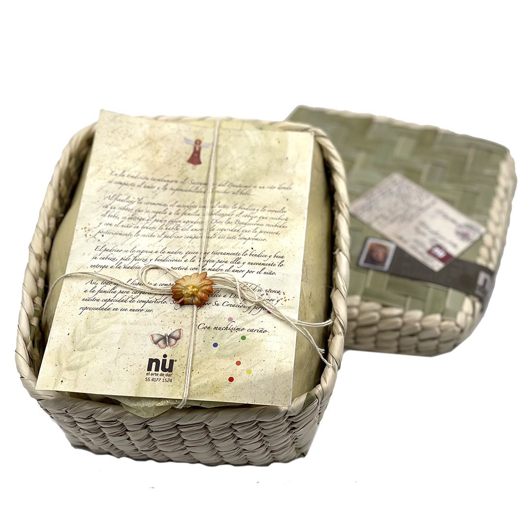 Medidas cesta: 18 x 17.5 x 10 cms. Rebozo: 60 x 120 cms